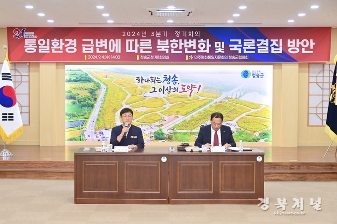 민주평화통일자문회의 청송군협의회(협의회장 윤병학)는 지난 4일 오후 2시 군청 제1회의실에서 ‘2024년 3분기 정기회의’(이하‘정기회의’)를 개최했다.