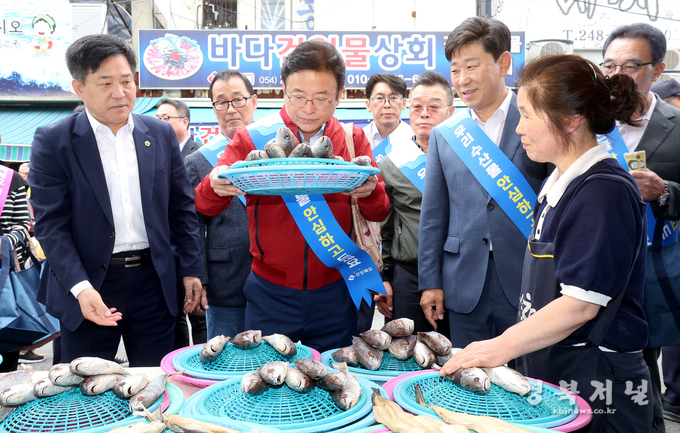 안전한 우리 수산물 소비 촉진을 위해 동해안 경북 대표 수산물인 오징어를 비롯한 돌미역, 다시마, 가자미, 고등어 등을 손수 구입했다.
