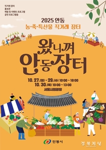 대한민국을 대표하는 전통문화도시 안동이 올해도 서울 도심 한복판에서 안동의 맛과 멋을 선보인다. 안동시(시장 권기창)는 10월 27일(월)부터 10월 30일(목)까지 4일간, 서울시청 앞 서울광장에서 ‘2025 왔니껴안동장터’를 개최한다. 이번 행사는 안동의 우수한 농축특산물을 수도권 시민에게 직접 소개하고, 전통문화와 체험이 어우러진 복합형 문화장터로 운영된다. 작년에 이어 두 번째로 열리는 이번 장터는, 행사 규모를 약 두 배로 확대해 작년 방문객들의 호응과 품절 아쉬움을 해소하고 보다 풍성한 볼거리와 먹거리를 제공할 예정이다. - 안동의 맛을 그대로! 청정 자연이 빚은 안동 농ㆍ특산물 한자리 - 장터에서는 안동의 생산자와 서울의 소비자가 직접 만나는 신뢰의 직거래 장터가 펼쳐진다. 주요 판매 품목은 전국적으로 명성이 높은 안동 백진주쌀, 신선한 안동사과, 프리미엄 안동한우, 짭조름한 안동 간고등어 등이다. 또한 미식가들의 사랑을 받는 안동찜닭, 깊은 향의 안동소주, 건강식품 산약(마), 전통 음료 안동식혜, 햄프 특산품 등 안동의 대표 먹거리들도 현지 직송으로 신선하게 판매된다. - 보고 즐기는 안동의 멋! 전통공연ㆍ체험으로 만나는 안동문화 - ‘왔니껴