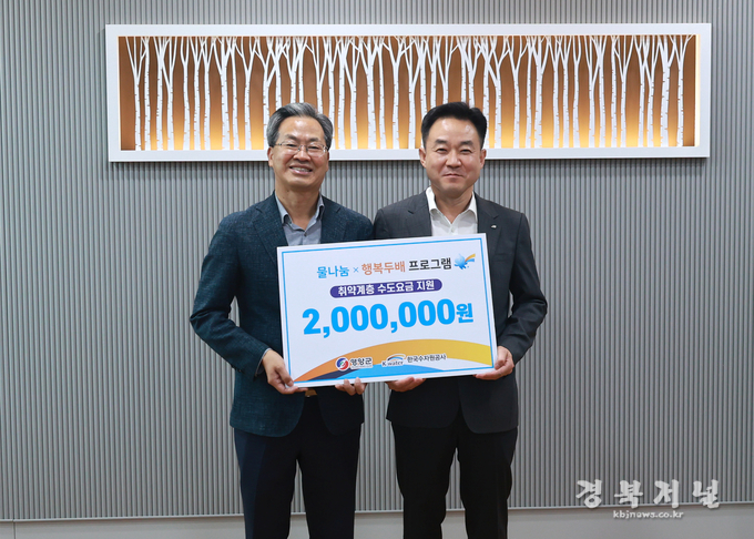 K-water 경북지역협력단(단장 양승경)은 9월 25일「물나눔×행복두배」프로그램의 일환으로 수도요금 감면 혜택을 받지 못하는 영양군 취약계층에 수도요금 지원금을 전달했다.