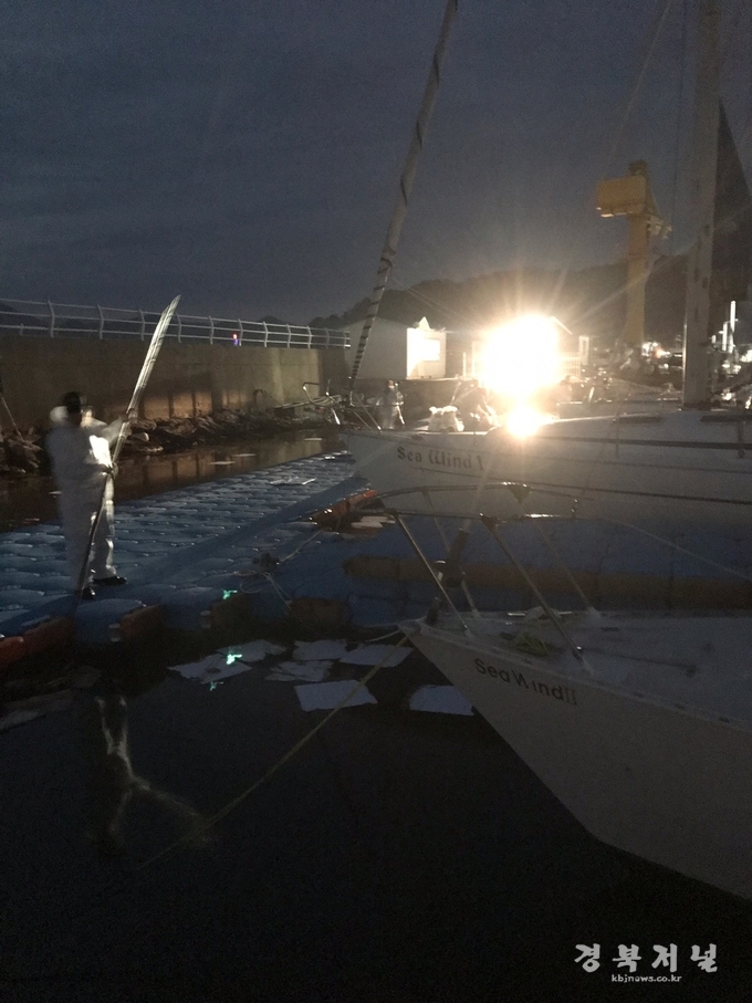 울진해양경찰서(서장 박경순)는 26일 오후 2시 30분께 울진군 후포항내 남방파제 부근에서 해상에 기름이 떠 있다는 신고를 접수, 방제정·경비함정·연안구조정 등을 급파해 방제작업을 하고 있다고 밝혔다.