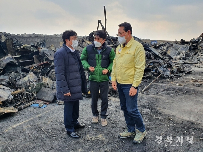 국민의힘 박형수의원 (영주,영양,봉화,울진)은 지난 29일 발생한 후포항 소형선박 어망보관창고 화재현장을 전찬걸 울진군수 김대경 후포수협장 등 과 함께 둘러보았다.
