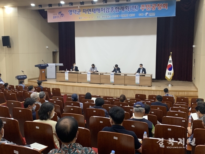 영덕군(군수 이희진)은 6월 8일 영덕로하스 수산식품 지원센터 대강당에서 『영덕군 자연재해저감 종합계획 재수립 공청회』를 개최하였다. ‘자연재해저감 종합계획’은 태풍, 호우, 강풍, 해일, 대설, 가뭄 등 자연재해에 대하여 「자연재해대책법」제16조의 규정에 따라 영덕군 전체 자연재해를 포괄하는 종합적인 계획으로 방재분야 최상위 종합계획이다.