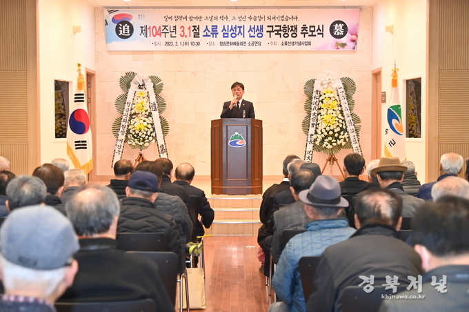 청송군(군수 윤경희)은 제104주년 3,1절을 맞아 지난 3월 1일 청송문화예술회관 소공연장에서 각계 주요 인사, 지역유림, 학회 회원 등 100여명이 참석한 가운데 소류 심성지 선생 구국항쟁 추모식을 개최했다.