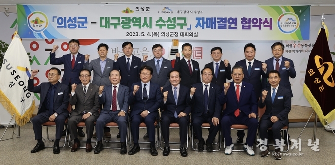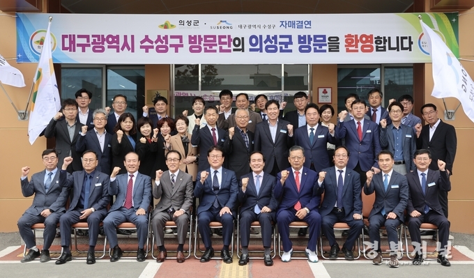 경북 의성군(군수 김주수)은 대구 수성구(구청장 김대권)와 4일 의성군청 대회의실에서 도·농 상생발전과 우호 증진을 위해 자매결연을 체결했다.
