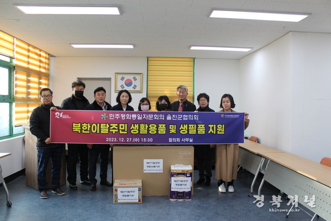 민주평화통일자문회의 울진군협의회(회장 이선욱)는 연말연시를 맞아 2023.12.27.(목)15:30분 협의회 사무실에서 관내 생활이 어려운 북한이탈주민 2가구에 생활용품 및 생필품, 장학금을 전달하였다.