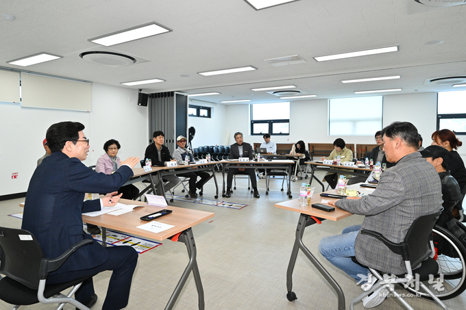 이에 대해 김광열 영덕군수는 “장애인의 고령화 비율이 갈수록 높아지는 상황에 대해 적극적인 대응이 필요하다는 것에 깊이 공감한다”며, “앞으로 장애인의 사회적 문화적 생동을 활성화할 공간을 확보하고 상응하는 사업과 프로그램을 추진하도록 힘쓰겠다”고 답했다.