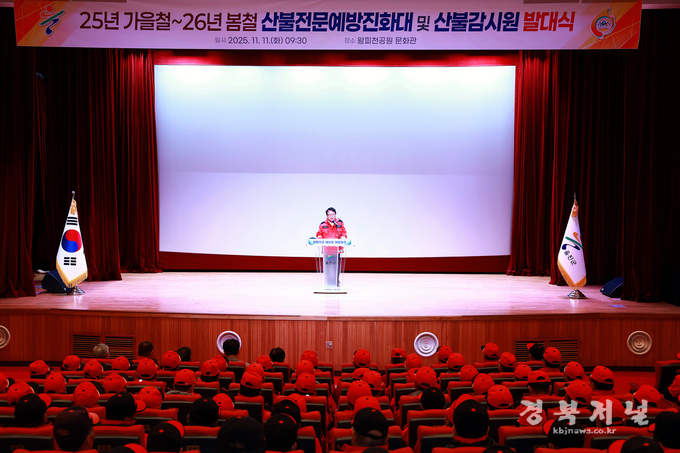 울진군(군수 손병복)은 지난 11월 11일 25년 가을철부터 26년 봄철까지 이어지는 산불조심기간을 맞아, 산불전문예방진화대와 산불감시원 등 200여 명이 참석한 가운데 왕피천공원문화관에서 산불예방 및 방지를 위한 발대식을 개최했다.