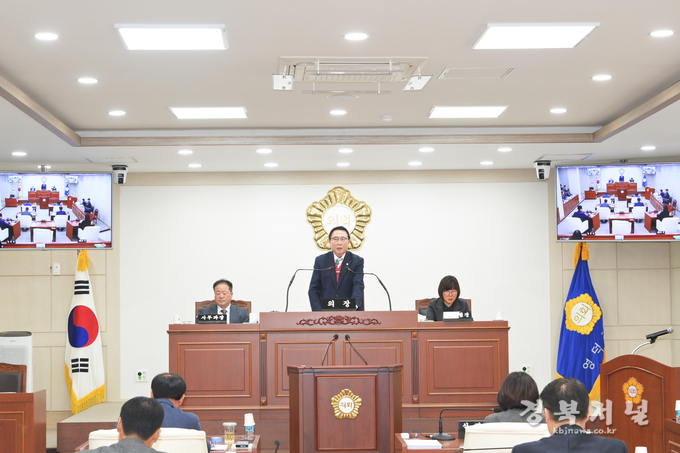 김성호 의장은 개회사를 통해 “이번 제2차 정례회는 행정사무감사를 비롯해 내년도 예산안을 심사하는 등 군정 추진의 성과를 점검하고, 내년도 군정 방향을 결정짓는 중요한 회기”라며, “생산적인 회기 운영을 통해 영덕의 더 큰 도약과 성장, 그리고 미래 성장 방향을 제시하기 위해 최선을 다하겠다.”고 말했다.