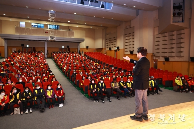 이날 발대식은 어르신들의 건강하고 안전한 일자리 참여를 위해‘천천히 안전하게 일하고 건강하게 생활하기’라는 주제로 경북교통문화연수원의 류하영 강사를 초빙하여 안전교육도 함께 진행했다.