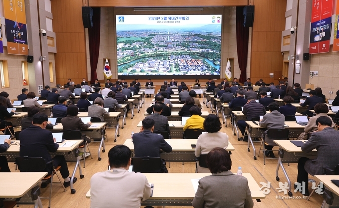 주낙영 경주시장이 23일 오전 청사 내 알천홀에서 설 명절 연휴 이후 첫 확대간부회의를 주재하고, 민생 안정과 지역 미래 전략사업의 속도감 있는 추진을 강조했다.