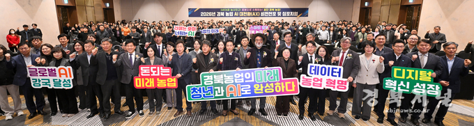 이날 행사는 이철우 경북도지사를 비롯해 경북스마트농업연구회, 대학, AI 기업, 농업인단체, 청년농업인, 시ㆍ군 농업기술센터 관계자 등 250여 명이 참석한 가운데 “경북농업의 미래, 청년과 AI로 완성하다”라는 비전을 선포했다.