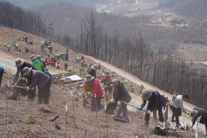 산림청(청장 박은식)은 제81회 식목일을 앞두고 대형산불로 피해를 입은 경상북도 안동시에서 산림청, 공공기관, 기업, 임업인 및 학생 등 370여 명과 함께 희망의 역사를 다시쓰는 ‘치유와 회복’의 나무심기 행사를 개최했다고 3일 밝혔다.