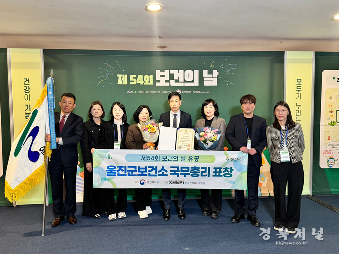 울진군은 제54회 보건의 날을 맞아 국민건강증진에 기여한 공로를 인정받아 4월 7일 국무총리 표창을 수상했다.