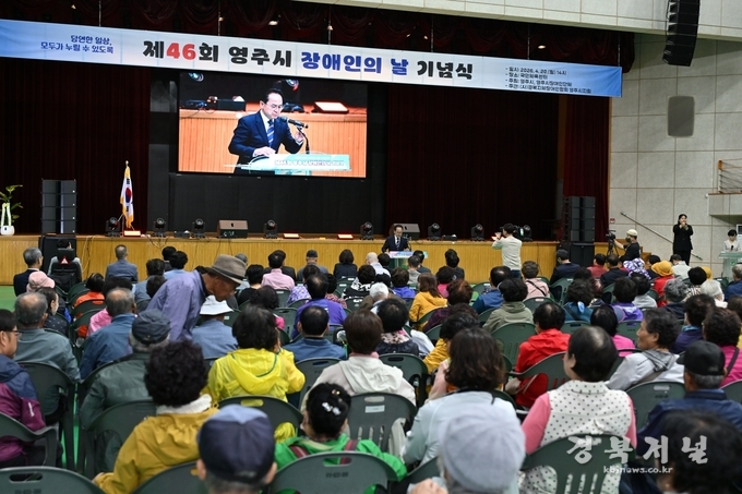 영주시는 20일 영주국민체육센터에서 ‘제46회 영주시 장애인의 날 기념식’을 개최했으며, 장애인과 가족, 자원봉사자 등 약 1,000여 명이 참석해 성황을 이뤘다.