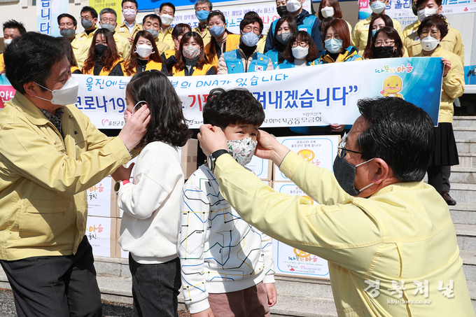 울진군(군수 전찬걸)은 지난 16일 관내 유치원, 초·중·고등학생 4,400명에게 전달하기 위해 직접 제작한 기능성 면마스크 6,500매(3천 2백만원 상당)를 울진교육지원청에 일괄 전달했다.