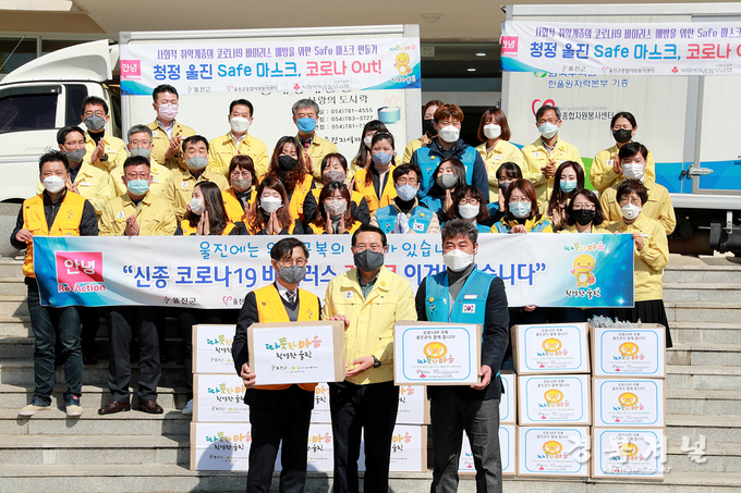 이번에 전달된 마스크는「코로나19」가 심각단계로 격상되며 마스크 품귀현상이 일어나자 3월초부터 울진군종합자원봉사센터와 울진지역자활센터 금실은실사업단, 지역 내 옷수선 가게 및 개인 재능기부자 등 50여명의 봉사자들이 하루 13시간씩 보름동안 작업하여 6,500매를 제작·완료하였으며, 유치원생과 초등학생은 1인 2매, 중·고등학생은 1인 1매를 지원한다.