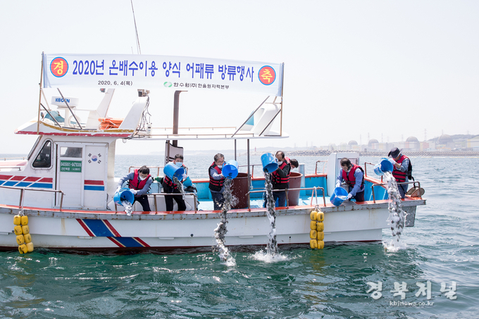 이종호 본부장은 인사말을 통해 “어패류 방류사업으로 원전 온배수의 유용성과 청정성을 널리 알리는 한편, 방류된 치어와 치패가 무럭무럭 자라서 코로나19로 침체된 지역 어촌계 어민들의 소득 증진에 기여하길 바란다.”고 전했다.