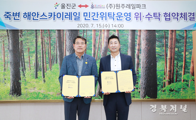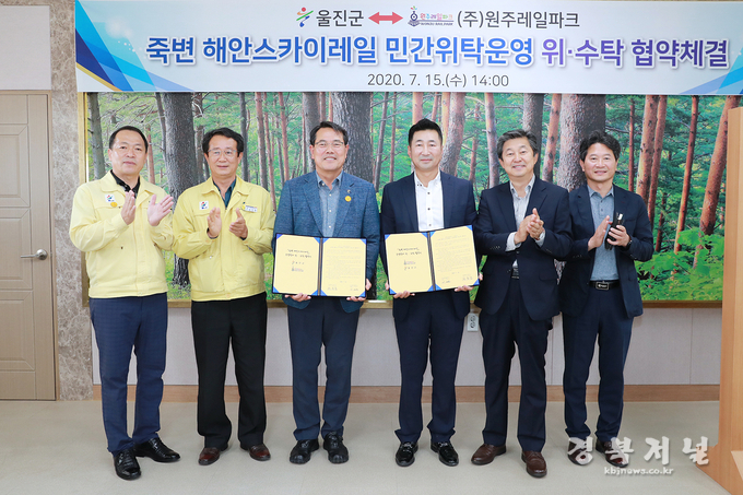 울진군(군수 전찬걸)은 울진의 랜드 마크가 될 죽변 해안스카이레일 민간위탁운영을 위하여 ㈜원주레일파크와 위·수탁협약을 체결하였다.