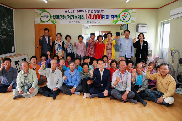 오지에 거주하는 지역주민에게 큰 사랑을 받아온 찾아가는 건강보건소는 지난 2013년 4월 발대식을 갖고 근남면 구산리에서 진료를 시작해 매화면 기양3리에서 1만3,000명째 진료를 달성한데 이어 이날 죽변면 화성2리에서 1만4,000명째 진료기록을 달성했다.