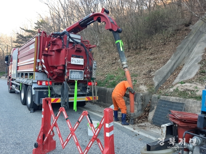 태풍 등으로 도로변에 쓰러지거나 대형버스 통행에 불편을 주고 있는 백일홍 나무 가지 전정과 겨울철 비나 눈이 올 경우 결빙을 방지하기 위해 배수로에 쌓인 퇴적물을 준설차를 이용하여 제거하였다.