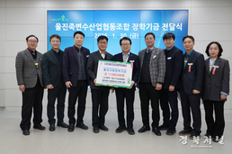 울진죽변수산업협동조합(조합장 조학형)은 지난 1월 30일 울진사랑 장학기금으로 11,060천원(2025년)을 (재)울진군장학재단에 기탁했다. 울진죽변수협의 장학기금 기탁은 올해만의 일이 아니다. 2013년부터 꾸준히 장학사업에 동참해 온 울진죽변수협은 지역 인재 육성을 위한 든든한 후원자로 자리매김하고 있다. 특히 수협 임·직원들은 울진군장학재단에 정기 후원자로 매월 1만 원씩 후원하여 현재까지 1억 3천만 원 상당을 기탁했다. 조학형 울진죽변수협 조합장은 “울진의 학생들이 잘 자라는 것이 곧 울진의 미래가 단단해지는 일이라고 생각한다”며“직원들이 한마음으로 정성을 보탠 만큼, 학생들에게 도움이 되는 장학사업에 의미 있게 쓰이길 바란다”라고 말했다. (재)울진군장학재단 관계자는 “울진 인재양성을 위해 오랜 시간 변함없이 이어온 후원에 대하여 감사드린다”며“기탁해 주신 장학금이 학생들이 꿈과 미래를 마음껏 펼칠 수 있도록 소중히 사용되도록 최선을 다하겠다”라고 감사의 뜻을 전했다. 한편, (재)울진군장학재단에 기탁된 장학금은 전액 장학사업을 위한 기금으로 적립돼 울진지역 인재들을 위한 장학사업에 쓰일 예정이다. 후원 참여를 희망하는 경우 (재)울진군장학재단 홈