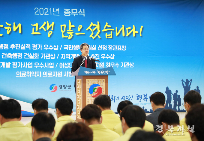 영양군수는 12월 31일 군청 대회의실에서 개최된 종무식에서“2021년 어려운 여건 속에서도 군정과 함께 해주신 군민 여러분께 감사드리며, 새해는 더 큰 꿈과 새 희망을 그려나갈 것을 약속드린다.”고 소회를 밝혔다.