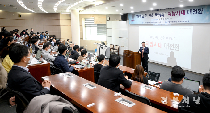 이철우 경북도지사는 19일 서울대 행정대학원에서 ‘지방시대 대전환’을 주제로 특강을 진행했다.