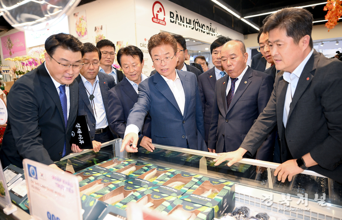 이철우 도지사는 28일 한국식품 유통매장인 K마켓을 방문해 매장 내 경상북도 우수농수산식품 상설 판매장에서 K마켓 고상구 회장과 경북특산품 및 과일 수출 홍보로 현지 일정을 시작했다.