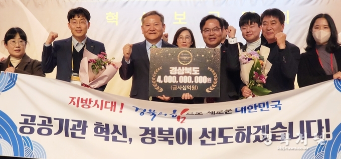 경상북도는 10일 행정안전부가 주관하는 ‘공공기관 혁신 추진 우수 기관 평가’에서 최우수 기관으로 최종 선정돼 특별교부세 40억원을 확보했다고 밝혔다.
