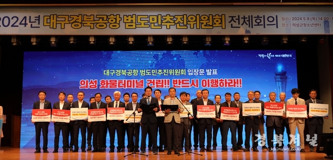 범도민추진위는 9일 의성 청소년센터에서 전체 회의를 열고, 최근 대구경북공항 복수 화물터미널 건설에 대해 침묵하고 있는 국토부를 향해 의성에 화물터미널을 건립해 달라고 강력히 요청했다.