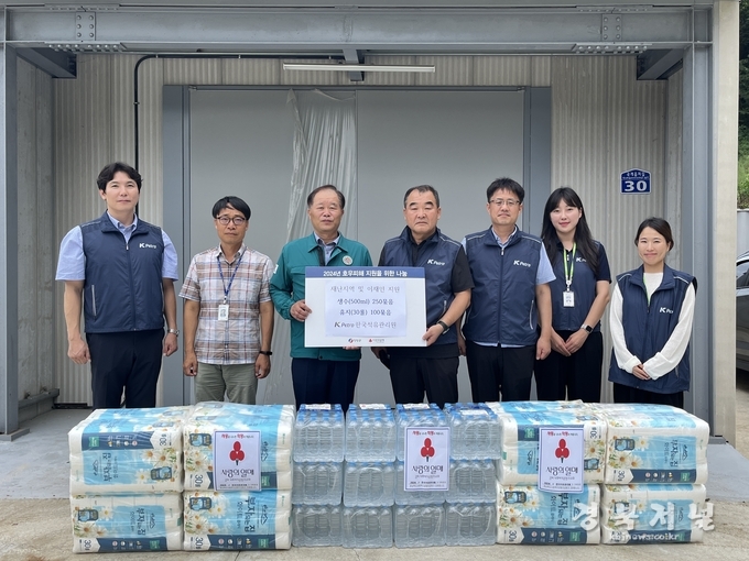 그리고 같은 날 한국석유관리원에서 물(500ml, 20개입) 250묶음과 휴지(30롤) 100묶음을 기탁하여 집중호우와 폭염으로 어려운 시기를 겪고 있는 주민들을 위해 이웃사랑을 실천했다.