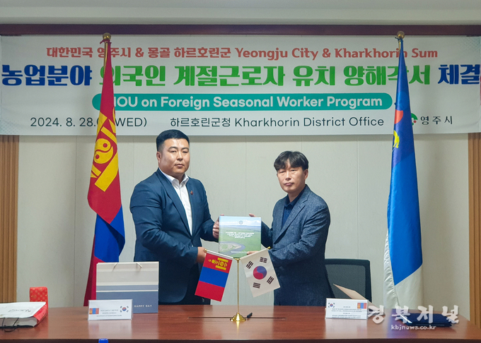 경북 영주시는 28일 몽골 하르호린군을 방문해 계절근로 신규유치 업무협약을 체결했다.