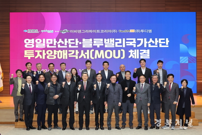 이날 협약식에는 이강덕 포항시장을 비롯해 이철우 경상북도지사, 서재현 이비덴그라파이트코리아㈜ 대표이사, 김영진·도인환 ㈜투디엠 공동대표이사, 시·도의원 및 유관기관 관계자 등 30여 명이 참석했다.