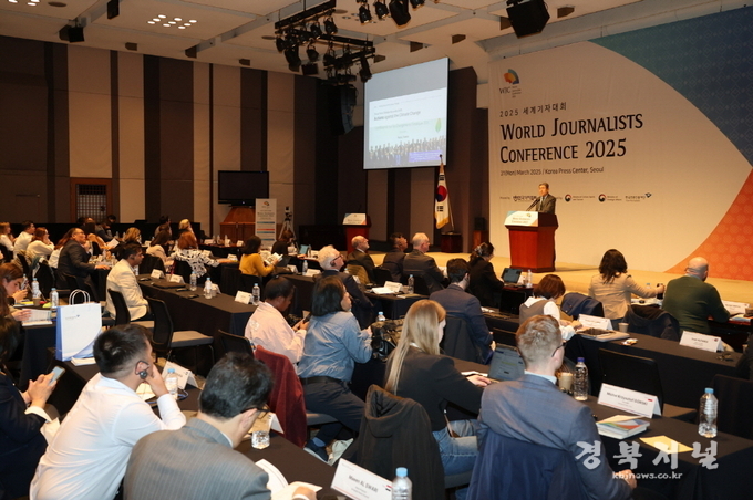 이강덕 포항시장은 지난달 31일 서울 한국프레스센터 국제회의실에서 열린 ‘2025 세계기자대회’에 참석해 ‘포항, 산업도시에서 환경도시로의 대전환’을 주제로 특강을 진행했다.