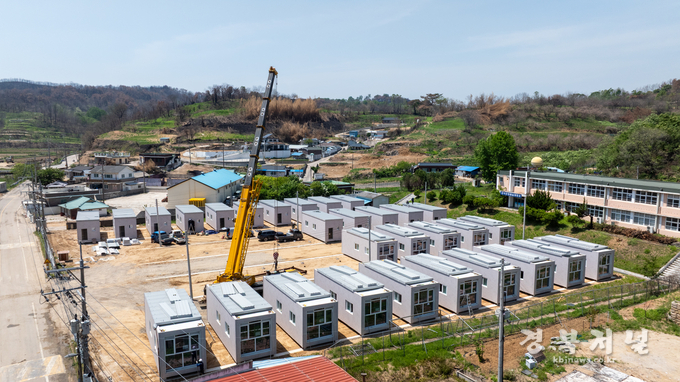 영덕군이 지난 3월 말 발생한 경북 산불에 대한 복구작업의 일환으로 지난 11일 영덕읍 화수2리에 임시 조립주택 16동을 설치를 완료하고 16일 추첨과 입주를 진행했다.