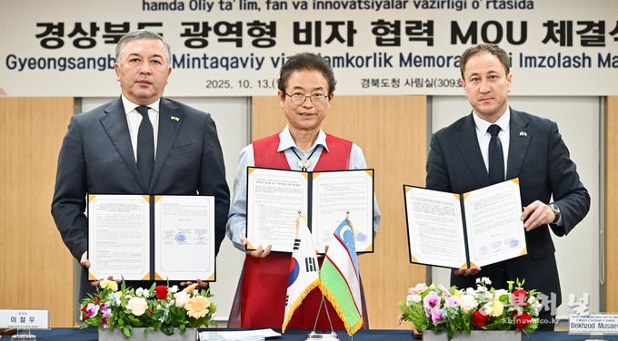 경상북도는 13일 도청 사림실에서 이철우 경상북도지사, 우즈베키스탄 베흐조드 무사예프 대외 노동청장, 타히르존 사파로브 대통령실 담당관 등이 참석한 가운데, 우즈베키스탄 대외 노동청 및 고등교육과학혁신부와 ‘경상북도 광역형 비자 업무협약’을 체결했다.
