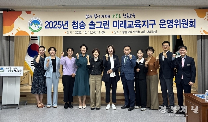 경상북도청송교육지원청(교육장 남정일)은 2025년 10월 15일(수) 경상북도청송교육지원청 대회의실에서 2025년 청송 솔그린 미래교육지구 사업 추진 현황과 2026년 미래교육지구 발전 방안 모색을 위해 정기 운영위원회를 개최하였다.