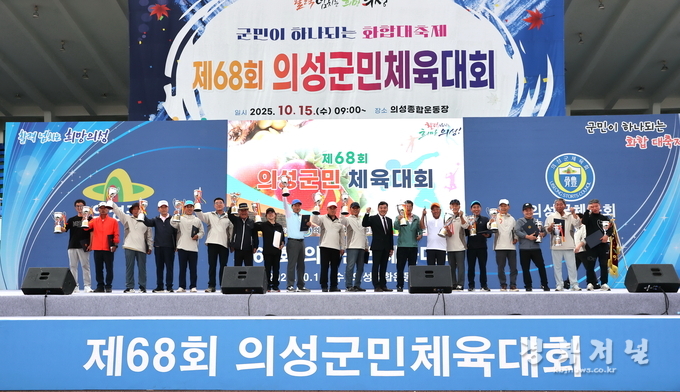 의성군(군수 김주수)은 지난 10월 15일(수) 의성종합운동장에서 열린 ‘제68회 의성군민체육대회’가 군민 1만여 명이 참여한 가운데 성황리에 마무리되었다고 밝혔다.