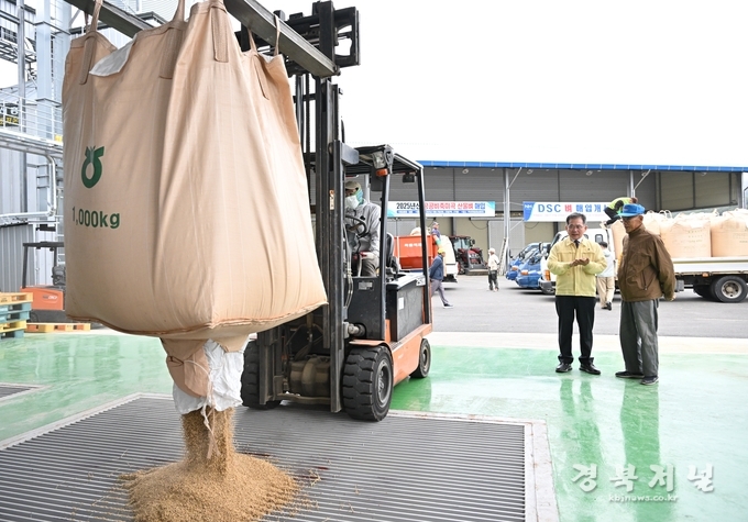 군위군은 10월 21일(화) 우보면 팔공농협 DSC(건조저장시설)에서 2025년산 공공비축미곡 산물벼 매입을 시작했다.