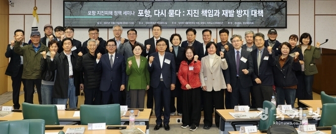 포항시와 ㈜아주뉴스코퍼레이션이 공동주최한 ‘포항 지진피해 정책포럼’이 23일 서울 여의도 국회 의원회관에서 ‘포항, 다시 묻다: 지진 책임과 재발 방지 대책’을 주제로 열렸다.
