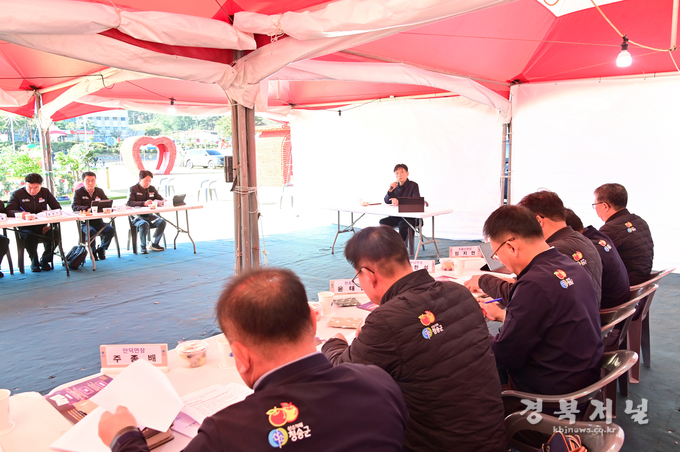 윤경희 청송군수는 오는 10월 29일부터 11월 2일까지 청송읍 용전천 일원에서 열리는 ‘제19회 청송사과축제’를 앞두고, 축제 준비 현장에서 확대 간부회의를 주재했다.