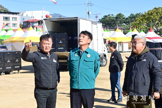윤 군수는 이날 현장에서 직접 유관기관 점검자와 함께 행사장 내 가설건축물, 야외무대, 조형물을 점검하고 경찰, 소방, 가스, 전기 분야별로 안전 위해 요소가 없는지 꼼꼼히 확인하였으며, 관람객 입장에서 동선과 부스 간 배치 형태까지 세밀하게 점검했다.