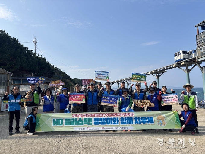 울진군(군수 손병복) 종합자원봉사센터(센터장 장태윤)가 지난 10월 26일 죽변면 봉수항 일대에서 댕댕이가족봉사단, 지역 자원봉사단체, 해군 1함대 포항대대 214전진기지대 부대원 등과 함께 해양정화활동 및 펫티켓 홍보 캠페인을 진행했다.