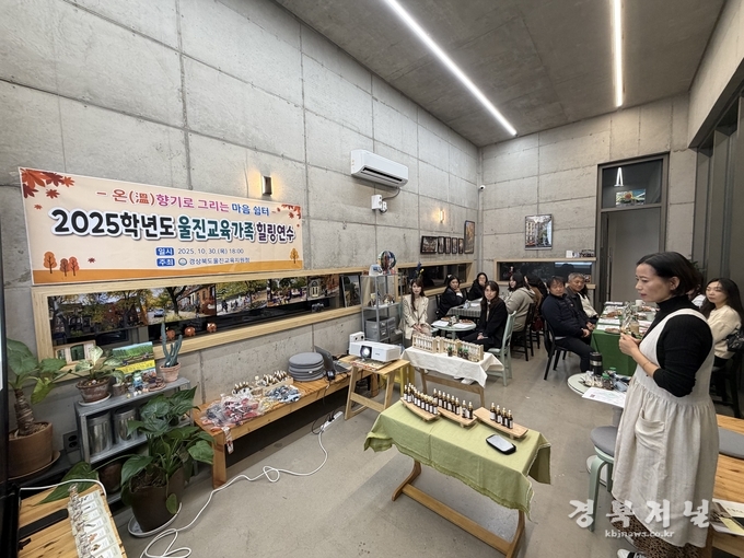 경상북도울진교육지원청(교육장 이기협)은 10월 30일(목) 울진 산포애서 카페에서 유치원 학부모와 학교도서관학부모자원봉사자, 유치원 교원 등을 대상으로 「온(溫)향기로 그리는 마음 쉼터!」 힐링연수를 개최하였다.
