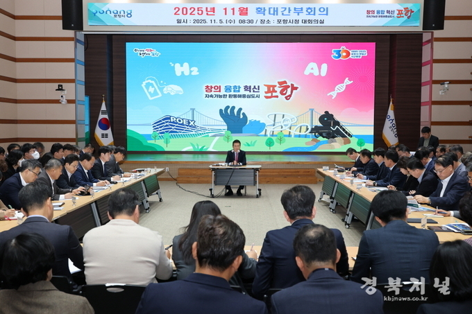 포항시는 5일 시청 대회의실에서 이강덕 시장 주재로 ‘11월 확대간부회의’를 열고 시정 핵심 현안과 미래 전략을 공유했다.