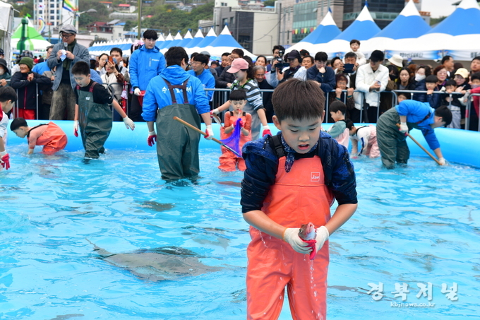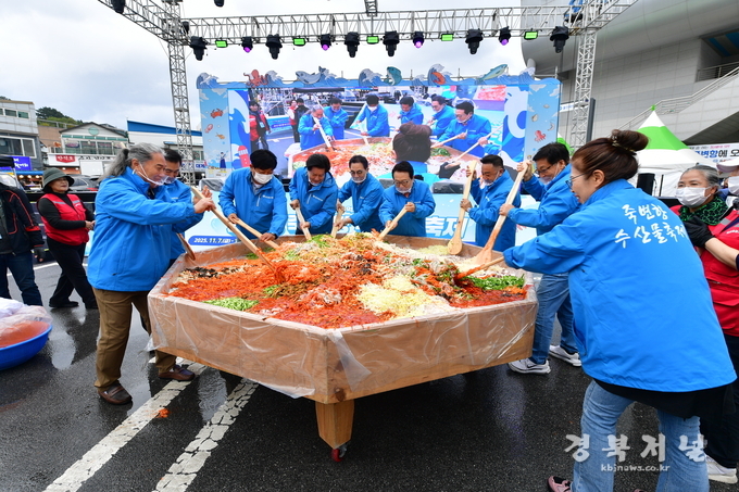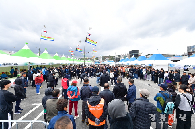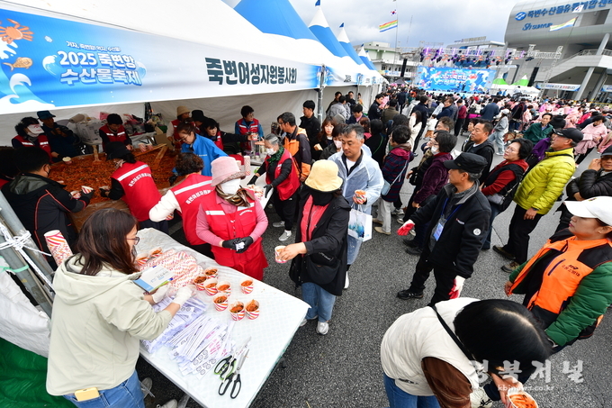11월 8일 울진 죽변항에서 열린‘2025 죽변항 수산물 축제’는 전국에서 찾아온 관광객과 지역 주민들로 대성황을 이뤘다. 이날 축제장에는 비가내리는 궂은 날씨에도 이른 아침부터 방문객이 몰려 인산인해를 이뤘다. 맨손활어잡기체험, 물회퍼포먼스, 수산물 무료시식, 죽변항 화합올림픽 등 다양한 프로그램이 마련되어 관광객들의 큰 호응을 얻었다. 최선학 기자 kbnews7005@hanmail.net