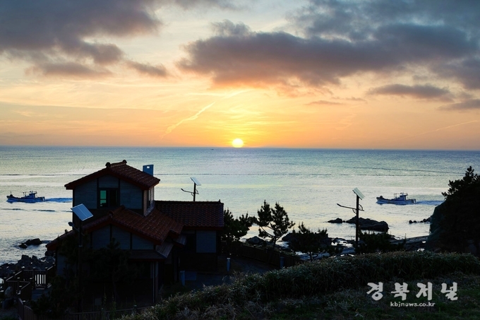 바다와 붉은 지붕 그리고 해를 품은 빛이 함께 어우러지며 한 폭의 그림 같은 죽변의 아침이다.