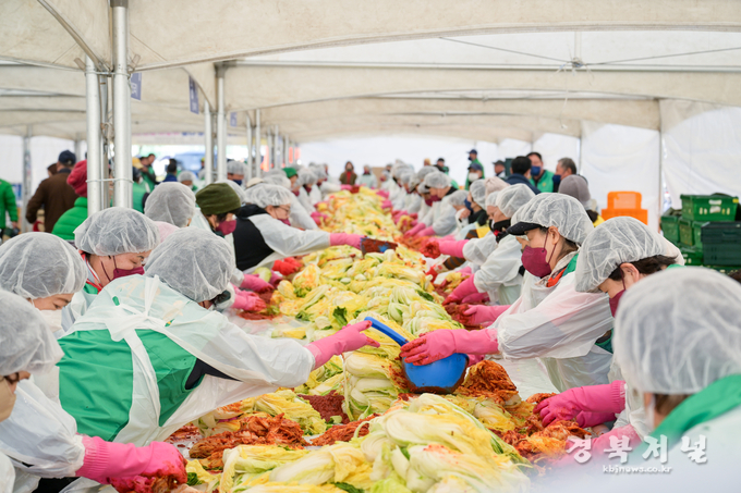 영덕군 새마을회는 관내 저소득층과 홀몸 어르신 등 사회 취약계층의 건강한 겨울나기를 돕기 위해 지난 27일 영덕군민운동장에서 사랑의 김장 나눔 행사를 펼쳤다.