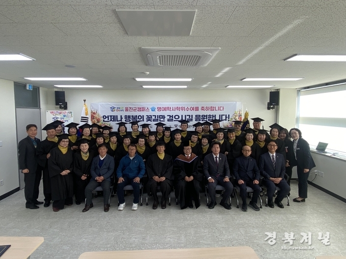 울진군(군수 손병복)은 지난 11월 28일 울진군 평생학습관에서 졸업생과 관계자 등 50여 명이 참석한 가운데 2025년‘경북도민행복대학 울진군캠퍼스’명예학사 학위수여식을 가졌다.